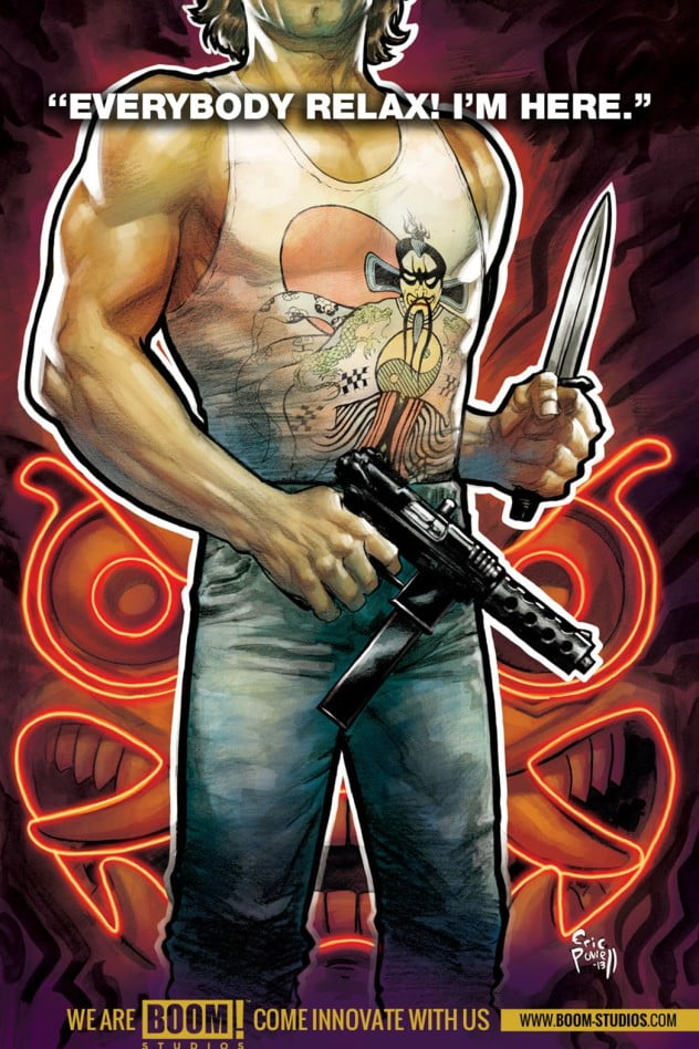 The most important factor in this book coming out and being what it is as far as I am concerned is the involvement of John Carpenter working on the story with Eric Powell. And you feel that from the first page, great epic Jack Burton dialogue intact and powering you into the world of this new comic. Only second to the powerful prose is the killer lines of Churilla. He brings in just enough likeness of the characters from the cult hit so you automatically know who everyone is without letting strict representation limit his artwork. Great story, amazing art, the return to a world that us fans of the movie have longed for for decades and BOOM! has made it a reality for us lucky kids.