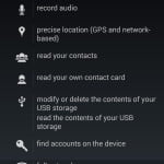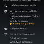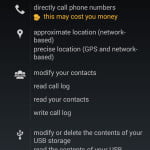 Now while I’m not making any guarantees that Facebook couldn’t (in theory) use the permissions for their own gain, the reality is that this standard permission wording is found on many applications – may of which you may even have installed right now. Every day people sign up for services and agree to terms that they don’t read and the same goes for installing apps on your device and not reading the permissions. If you don’t believe me I’ve compiled some not-so-pretty (my apologies) screenshots of a variety of popular apps and the permissions they require. If you look through the photos you’ll see a lot of the same permissions that Facebook Messenger requires.