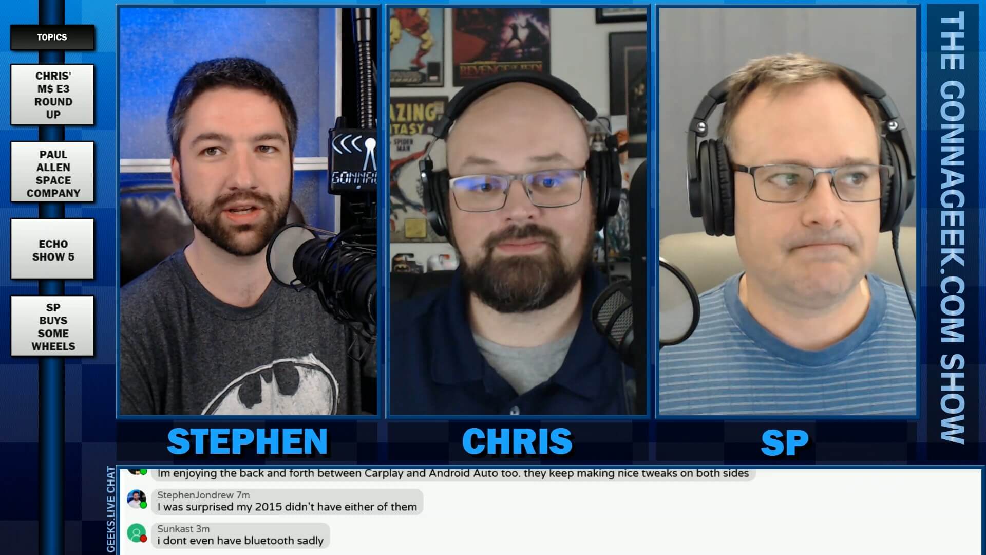 This week Chris summarizes a variety of announcements made by Microsoft and E3 this year. SP shares news that it seems like a previously discussed Space Company is shutting down. Stephen talks about the Echo Show 5 – and him and Chris debate on whether or not they were the first to get the camera privacy right.