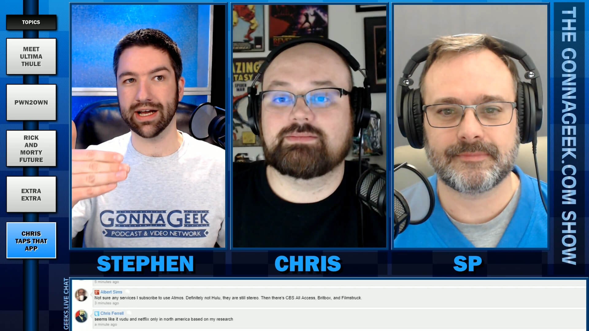 Hosted by Stephen Jondrew, Chris Ferrell and Stargate Pioneer. We broadcast at www.geeks.live.